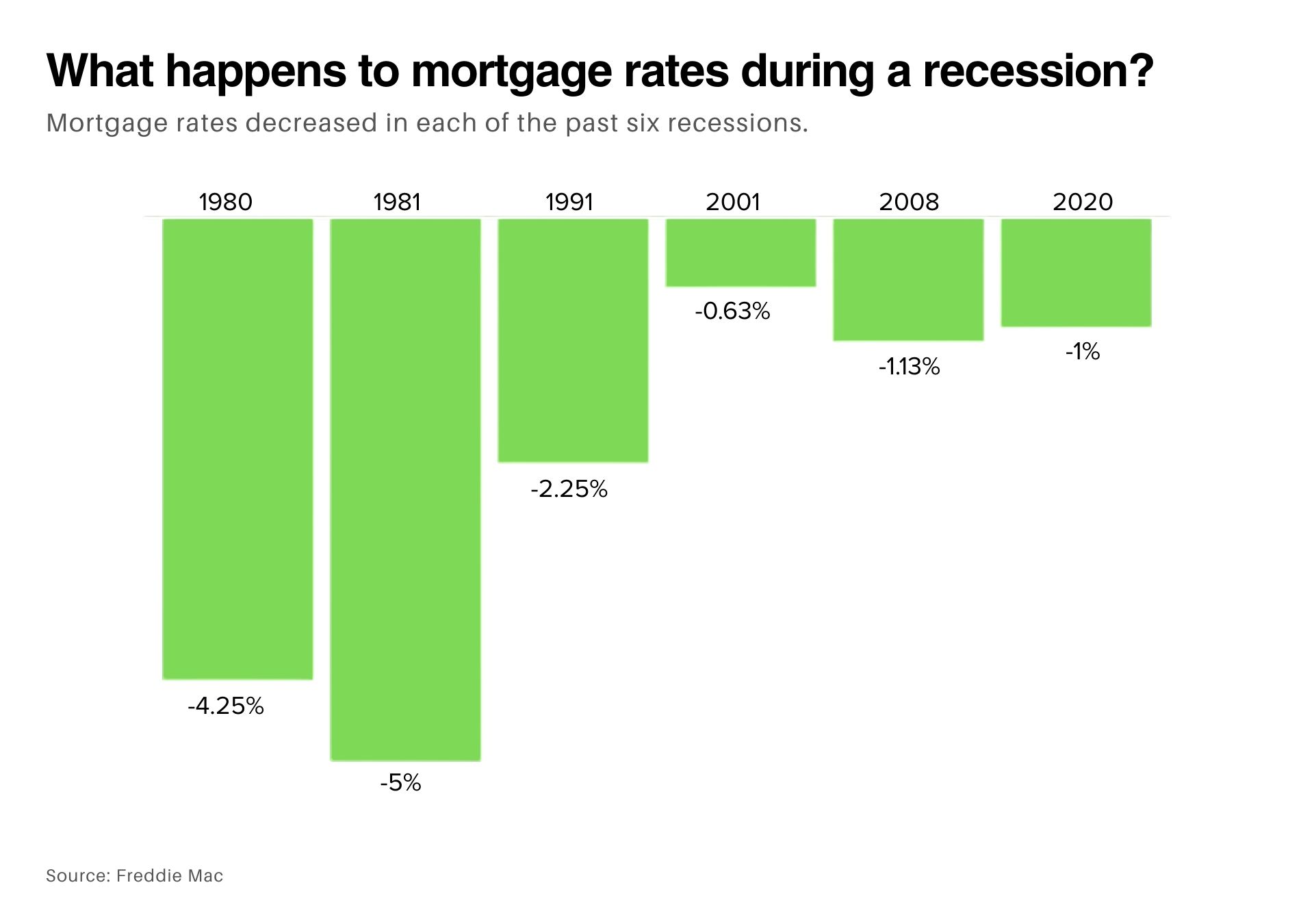 Here's some good news for buyers: historically, mortgage rates decrease during recessions.