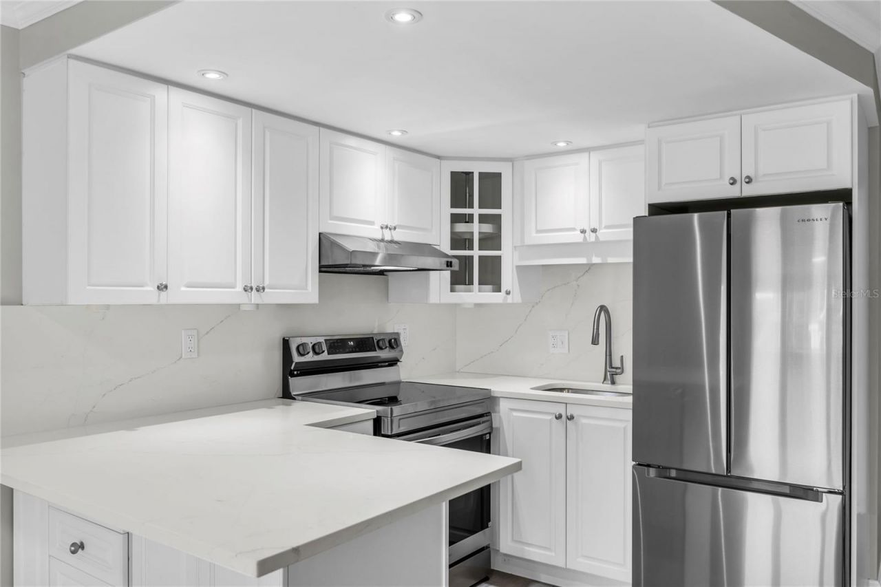 Welcome to your lakeside retreat at Vacation Village Resort, a gated community offering resort-style living along the beautiful Clermont Chain of Lakes. This fully renovated 2-bedroom, 1-bath condo features a bright, open layout with clean lines, modern finishes, and a neutral color palette that feels fresh, airy, and move-in ready. The completely updated kitchen is a showstopper, featuring brand-new stainless-steel appliances, crisp white shaker cabinetry, quartz countertops, and a sleek tile backsplash. Recessed lighting and a functional breakfast bar create a welcoming space that opens seamlessly into the main living area-perfect for both everyday living and entertaining. The living and dining spaces are filled with natural light and showcase brand-new luxury vinyl flooring throughout, fresh interior paint, and open sightlines that enhance the home's spacious feel. Sliding doors lead to a private screened patio, ideal for relaxing outdoors and enjoying the peaceful community setting. The renovated bathroom features modern tilework, updated fixtures, and a stylish LED mirror, while both bedrooms offer comfortable proportions and ample closet space. Additional upgrades include a brand-new hot water heater and a NEW ROOF, providing peace of mind and long-term value. Residents enjoy an impressive lineup of resort-style amenities, including a heated Olympic-size swimming pool with sundeck and gazebo, tennis and basketball courts, shuffleboard, playground, clubhouse with community activities, lake and sandy beach access, picnic and barbecue areas, plus a dock and boat ramp on Lake Louisa. HOA fees include exterior maintenance, water and sewer, cable, WiFi, pest control, and yard maintenance. RV and boat storage is available within the community for a small additional fee. Ideal as a primary residence, vacation home, or investment property, this beautifully updated condo is just minutes from shopping, dining, and entertainment, and less than 20 minutes from Disney attractions. Don't miss the opportunity to own a turnkey home in one of Clermont's most desirable lakefront communities.