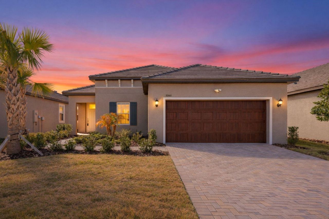 Discover effortless Florida living in the sought-after Medley at Mirada 55+ active community. This two year old Mediterranean-style home is immaculate, move-in ready, and an ideal alternative to waiting for new construction. The home offers 2 bedrooms, 2 bathrooms, and a flexible den or office, all within a bright open-concept Splendor layout designed for both comfortable daily living and entertaining. An oversized 2-car garage provides ample space for a golf cart, storage, or hobbies.The contemporary kitchen features upgraded GE stainless steel appliances, including a french door refrigerator, microwave, glass-top range with convection oven and air fryer. The Kinetico REVERSE OSMOSIS system provides high quality purified drinking water for added convenience. Additional upgrades include crown molding, a dedicated laundry room with cabinetry, Ring doorbell, and exterior flood lights, showcasing thoughtful attention to detail throughout. Enjoy 1,783 square feet of living space on a 6,075-square-foot maintenance-free homesite. Exterior maintenance, lawn care, irrigation, basic cable, and internet are included for truly low-maintenance living. Residents of Medley enjoy a private resort-style clubhouse with a sparkling pool, poolside bar and caf?, ballroom, billiards room, fitness center, and a full social calendar! Recreational amenities include pickleball, tennis, bocce ball, and shuffleboard with this home being just steps away from all of the fun! Ownership also includes membership to the Mirada freshwater lagoon, featuring sandy beaches, kayaking, swim areas, lounge seating, and food and beverage options, offering a vacation-like setting right inside the community. Conveniently located near I-75, the home is a short drive from The Shops at Wiregrass, Tampa Premium Outlets, KRATE Container Park, and Main Event Wesley Chapel, along with everyday shopping and dining. Nearby medical facilities include AdventHealth Zephyrhills and AdventHealth Dade City. Experience the ideal blend of comfort, convenience, and active 55+ living at Medley at Mirada!