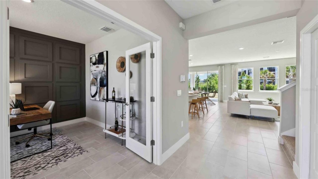 One or more photo(s) has been virtually staged. Under Construction. This 2 story home features a well-appointed kitchen that overlooks the living and dining areas and flows outdoors to a covered lanai. The flex space at the front of the home and a guest room and full bath off the living area complete the first floor. Upstairs, Bedroom 1 is complete with an ensuite bathroom and offers tons of space. Two additional bedrooms, a second full bath, and a laundry room surround a large bonus room, perfect for work or for play. This home comes with an installed range, microwave, and built-in dishwasher. Pictures, photographs, colors, features, and sizes are for illustration purposes only and will vary from the homes as built. Home and community information including pricing, included features, terms, availability, and amenities are subject to change and prior sale at any time without notice or obligation. CRC057592.