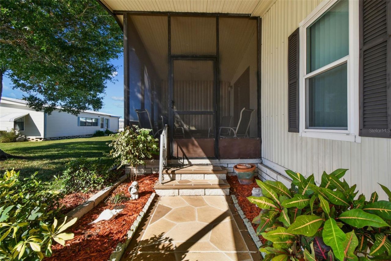 THE BEACH IS CALLING! Welcome to this Fun, Festive Florida Home located in the highly sought-after age-qualified community of Glenwood Estates, where you own your land! This beautifully maintained 2-bedroom, 2-bathroom home offers peace of mind with all the big-ticket updates already done - New Roof (2022), Vapor Barrier and Subfloor, HVAC (2020), New Windows, Electrical Panel (2023), Updated Primary Bathroom (2023), New Washer (2023), and a freshly screened Lanai (2024).From the moment you arrive, you'll be impressed by the custom paver driveway and carport large enough for three vehicles. This charming cul-de-sac location provides extra privacy with no rear neighbors, enhanced by lush tropical landscaping, a mature shade tree, and vinyl fencing along the back. Whether you're relaxing in your screened lanai, entertaining friends, or soaking in the Florida sunshine, this home embodies the relaxed coastal lifestyle you've been dreaming of. Enjoy the privacy of this oversized lot....ONE of the largest LOTS in the community!!!Inside, enjoy waterproof vinyl flooring throughout, custom blinds, and ceiling fans in every room for year-round comfort.The furnished interior features a bright, open kitchen with a breakfast bar, reverse osmosis system, and pantry for extra storage. The primary suite offers a walk-in closet and an updated bathroom with a walk-in shower, modern vanity, and granite countertops.Bright and Fun Colors beckon you to the Beach and enhance the interior space. Sliders to the screened Lanai lets you to enjoy the outdoors as well.Glenwood Estates is a centrally located Lake Community with tons of amenties...from the active clubhouse to the heated pool, stroll the lake or cast a line, even enjoy a bike ride through this quiet , tucked away park. The low monthly HOA of $320 includesw, water, sewer, trash, lawn care, cable and all amenties. Just minutes from the beach, shopping, dining, and all that the Florida Lifestyle is waiting for you - this one is ready for you to move in and start living your best life!