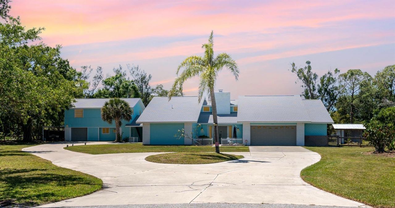 One or more photo(s) has been virtually staged. This exceptional Venice Acres family compound features a house attached with an additional guest house through an outside carport. It is situated on more than an acre of land in a peaceful cul-de-sac. Designed for extended families or anyone seeking both comfort and flexibility, the property provides an abundance of living spaces that cater to a variety of lifestyles. The main home includes three spacious bedrooms and three full bathrooms. Enjoy a large family room and dining room with vaulted ceilings and a cozy wood-burning fireplace. Sliding doors lead to a back porch, which opens to a private screened pool area featuring a large hot tub that accommodates 6 . Expansive kitchen is equipped with a central island, new stone countertops, new bamboo flooring, and plenty of cabinet space. Sliding glass doors from the kitchen also overlook the large pool desk for gatherings and entertainment. The living room connects to an inside laundry area and a third bathroom with convenient outside access. The primary bedroom, located on the far side of the house, includes both a walk-in closet and a second closet. Its recently renovated bathroom provides direct access to the pool area. The second and third bedrooms are generously sized and share a spacious bathroom between them. An oversized two car garage features an additional bonus or safe room, perfect for extra storage or hobbies. The newly fenced yard offers a secure space for animals or pets. Access to ULTRA HIGH FIBER SPEED INTERNET ( up to 7,000 Mbps) also features hard wired security cameras. The guest house is accessible from the pool area via a large porch. The guest house provides a studio apartment on the ground floor. Upstairs, there is a two bedroom, one bath apartment with vaulted ceiling ideal for guests or in-laws. Underneath the guest house, you'll find an extra garage and an extra carport, which can be used as a horse stable. The property boasts a large circular driveway and fully fenced backyard, ensuring ample space and security. There is plenty of room to store boats, RVs, and other recreational vehicles, making this property perfect for the active family. New roofs installed on both the main home and the guest house. Recent upgrades since 2021 include new air conditioner, updated kitchen flooring and stone countertops, new square D electrical panels in both houses with generator hookup, new water well with reverse osmosis water system , fresh paint throughout the interior and exterior, new refrigerators, renovated carport/horse stable. This unique property offers outstanding value and limitless opportunities to create your dream paradise. It is perfect for anyone seeking a spacious, adaptable home with room for extended family, hobbies and all the essentials for enjoying Venice, Florida lifestyle. Bring the boats, jet skis, RVs, horses, and loved ones, it's all possible at this one-of-a-kind-compound! The property is ideally situated just 4 miles from downtown Venice, Florida. This vibrant city is renowned for its picturesque waterways and restaurants, create a charming ambiance for residents and visitors alike. Walking distance to the world renowned Fox Lee farms, which supports horse equestrian. The property is only 6 miles from Venice Beach, one of the world's most stunning beaches. Residents will benefit from easy access to coastal recreation and just 20 miles to Sarasota airport ensuring connectivity for both business and leisure. Welcome to Paradise!!!