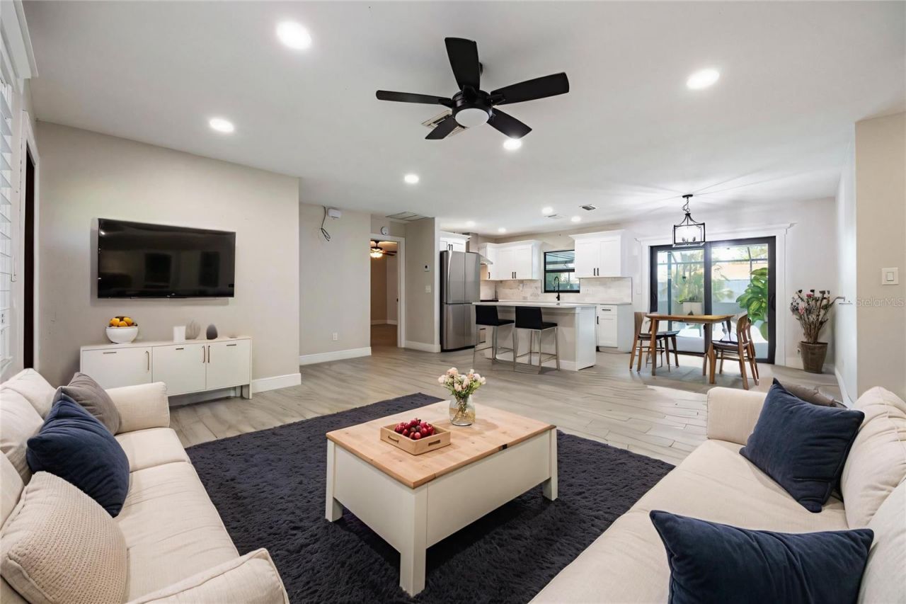 Welcome to your dream Florida escape - a completely renovated, designer-inspired pool home that blends modern luxury with breezy coastal charm. From the moment you arrive, you'll notice the attention to detail and quality craftsmanship that make this home a true standout. Step inside to discover GORGEOUS WOOD-LOOK PLANK TILE FLOORING that flows seamlessly throughout the entire home, beautifully complemented by CRISP 5-INCH BASEBOARDS and a LIGHT, AIRY COLOR PALETTE. The open-concept layout is ideal for both everyday living and entertaining, providing a warm and inviting atmosphere for family gatherings, weekend get-togethers, or relaxing evenings in. The heart of the home - the kitchen - has been thoughtfully designed with BRAND-NEW SOLID WOOD SOFT-CLOSE CABINETRY, QUARTZ COUNTERTOPS, a STRIKING MARBLE TILE BACKSPLASH, and a FULL SUITE OF STAINLESS STEEL APPLIANCES. Whether you're hosting a dinner party or enjoying your morning coffee, this kitchen delivers both style and functionality. Both bathrooms have been completely redone, featuring SLEEK NEW VANITIES, MODERN TILE SHOWERS, UPDATED TOILETS, and ENERGY-EFFICIENT LED LIGHTING THROUGHOUT THE HOME that adds a glow in every room. Enjoy true peace of mind with major upgrades already completed: a NEWER ROOF (2022), HURRICANE IMPACT WINDOWS, 2019 A/C, and NEWER EXTERIOR STUCCO. These high-value improvements make this home as reliable as it is beautiful - no need to worry about big-ticket repairs for years to come. But the real magic happens outdoors... Step out back into your own private tropical paradise. The SCREENED LANAI opens up to a SPARKLING POOL, surrounded by LUSH, PROFESSIONALLY LANDSCAPED GREENERY and a FULLY FENCED BACKYARD that's perfect for pets, family events, or simply unwinding in total privacy. All of this is nestled in a prime, central location - just minutes from Fort Myers, RSW International Airport, and the vibrant downtown Cape Coral scene, where you'll find incredible restaurants, waterfront dining, nightlife, and shopping. And the best part? This property is NOT IN A FLOOD ZONE and PERFORMED BEAUTIFULLY THROUGH RECENT HURRICANES. Whether you're looking for your forever home, a seasonal getaway, or a top-performing AirBnB investment, this property provides unmatched value, style, and peace of mind. Move-in ready, beachy bungalow vibes, and even better in person - don't miss your chance to own this Florida gem.
