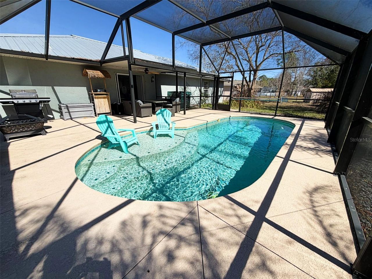 Be the first to enjoy this beautifully renovated pool home! This move-in ready property offers a true backyard oasis featuring a custom saltwater pool (2019) surrounded by lush landscaping and inviting outdoor space designed for relaxing or entertaining. To enhance the outdoor living experience, tenants can enjoy the existing patio furniture along with a brand-new gas grill and two spare propane tanks-perfect for weekend gatherings and easy Florida living.Inside, the home has been fully refreshed with major upgrades throughout. Both bathrooms have been completely remodeled-from tubs to vanities-offering a modern, clean design. The kitchen shines with brand-new cabinets and countertops, creating a bright and functional space. There is no carpet anywhere-just ceramic tile and laminate flooring throughout for easy maintenance. The entire interior has been freshly painted, HVAC pipes professionally cleaned post-construction, and updated A/C and a newer durable metal roof adds peace of mind. The open, bright layout is ideal for everyday living and hosting guests. New window coverings complete the fresh look. Outside, beautiful landscaping and a custom mailbox enhance the curb appeal.Prime location just 1 mile from the brand-new $13M Dog Park, Pickleball & Recreation Center, close to top-rated schools, shopping, and parks-and only 15 minutes to Flagler Beach.Beautifully maintained. Fully renovated. Exceptional outdoor living. Move right in and enjoy.