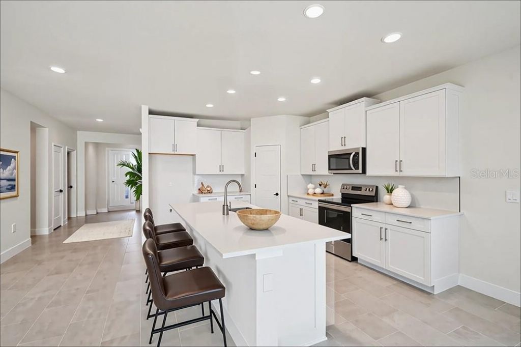 One or more photo(s) has been virtually staged. Under Construction. This one-story home has an open concept floor plan, featuring a spacious kitchen overlooking large living and dining areas that flow out to a covered lanai, a perfect place to relax or dine alfresco. At the front of the home, you will find two bedrooms that share a full bath, a laundry room off the garage, a fourth bedroom that is an optional den, and a powder bath. Bedroom 1 which includes Bathroom 1, is located at the back of the home for optimum privacy. This home comes with an installed stainless-steel dishwasher, range, and microwave. Pictures, photographs, colors, features, and sizes are for illustration purposes only and will vary from the homes as built. Home and community information including pricing, included features, terms, availability, and amenities are subject to change and prior sale at any time without notice or obligation. CRC057592.