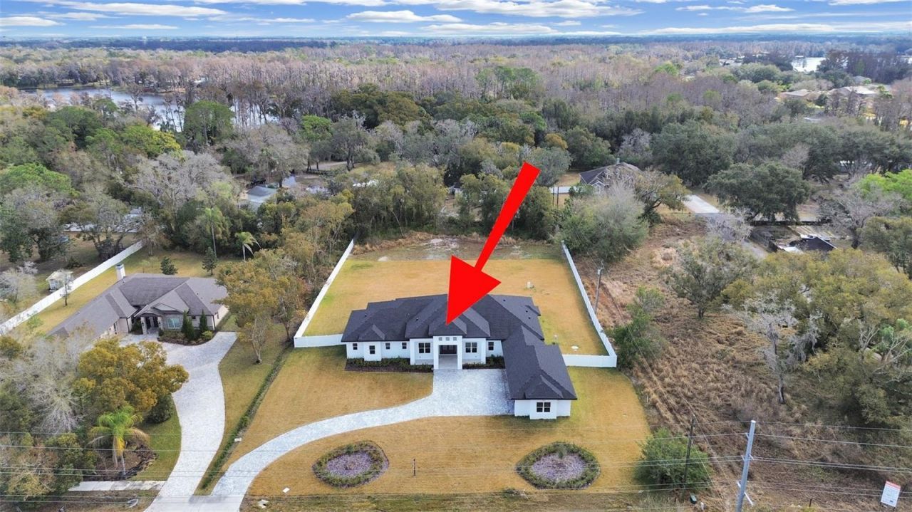 Luxurious Single-Story Estate on 1.24 AcresWelcome to this stunning 3,555 SF custom residence featuring 5 bedrooms and 4 bathrooms, perfectly situated on a sprawling 1.24-acre lot with paved driveway. This thoughtfully designed home offers the perfect blend of elegance and functionality.The expansive master suite (310 SF) serves as your private retreat, complete with a spa-like master bath (158 SF), dual walk-in closets, and a private water closet. The heart of the home features an open-concept design with a generous family room (212 SF) flowing seamlessly into a chef's kitchen (340 SF) and formal dining room (168 SF) - ideal for both everyday living and elegant entertaining.Additional highlights include a versatile TV room (312 SF), perfect for movie nights or a home office, and an impressive 994 SF four-car garage with adjacent storage and laundry facilities. Outdoor living is truly exceptional with 750 SF of covered lanai space featuring an extended entertainment area and outdoor kitchen - creating the ultimate Florida lifestyle experience for year-round gatherings.The home combines modern convenience with rural charm - well water access with public sewer connection via lift station. Four additional well-appointed bedrooms provide ample space for family, guests, or home office needs.This is luxury living at its finest in one of Lutz's most desirable locations.