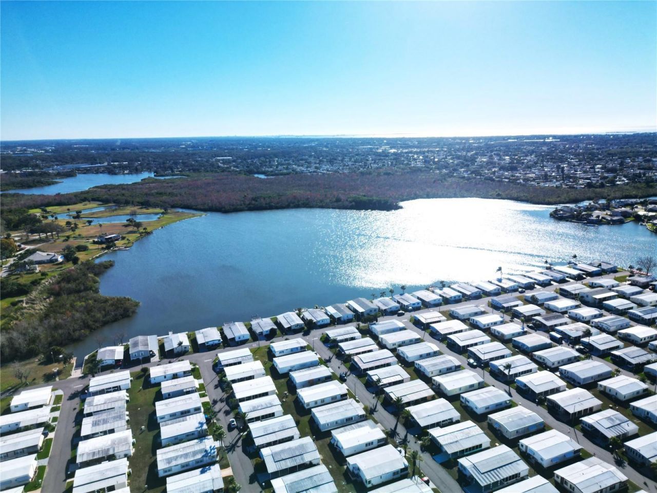 Lake Conley Mobile Home Park welcomes you into this gated home in Desirable 55+ community. This tastefully well kept home is ready for you with all furnishings provided. You enter through a secure gate while enjoying the private lake view, wild bird life and tranquil community. There is so much to enjoy!! You have fishing, boating, golf cart riding, club house with great social life gatherings, serene heated pool area, shuffleboard, community dock and boat ramp, and optional boat/RV storage (subject to availability for a fee)-all for a super low monthly fee.As you enter, you will appreciate this cheerful light and bright new kitchen, with all new stainless steel appliances, new flooring throughout and all new soft close kitchen cabinetry. You have a separate dining area and large comforting living room with a closed in front porch attached where you can enjoy morning coffee or evening cocktails surrounded by windows throughout. The primary bedroom has its own full bathroom and walk-in closet. The 2nd bedroom has a walk in closet as well with the guest bathroom nearby. The laundry is in the attached shed with plenty of room for storage. There is plenty of covered parking space for your vehicle and golf cart. You Own the Land, with no lot rent, low taxes, as well as HOA Fees approx. $63.41 a month. Pet-friendly park will allow with one dog or one cat no more than 25lbs.Conveniently located near the famous Tarpon Springs Sponge Docks and Fabulous Downtown New Port Richey that is full of entertainment, just 45 minutes to Tampa International Airport/St Pete/Clearwater airport and 45 minutes to world famous Clearwater Beach! Easy show, come see this Florida lifestyle.