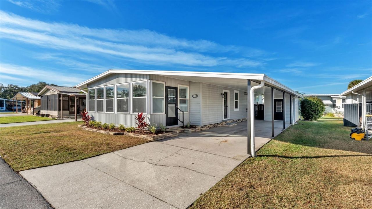 Completely remodeled 2 bedroom/2 bath manufactured home in desirable Floral Lakes 55+ community. Home features a beautifully remodeled kitchen with new shaker style cabinets, new countertops & new stainless steel appliances. Home has new luxury vinyl floors throughout. New central heat & air. Home has been replumbed. New double pane windows. Both bathrooms have been remodeled from top to bottom. New interior doors, door handles & door hinges. New light fixtures & ceiling fans throughout. New 2 inch faux wood blinds. Freshly painted interior and exterior. Large 10x20 Florida room. This is a must see. Schedule your showing today.
