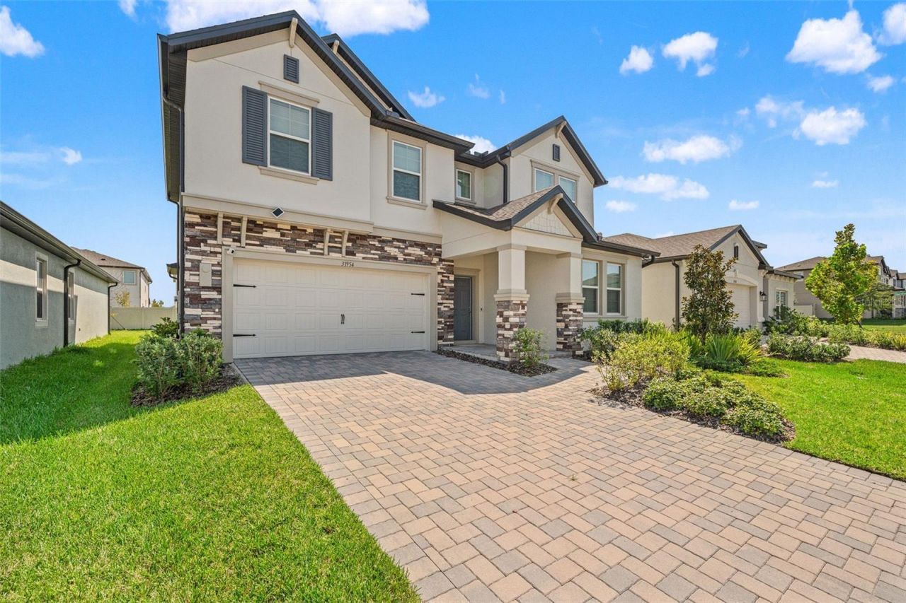 Welcome to this stunning 4-bedroom, 3-bathroom home built in 2024 by M/I Homes, perfectly situated in the highly desirable Epperson Lagoon community. Offering 2,601 sq. ft. of beautifully designed living space, this residence combines modern style with resort-style amenities for the ultimate Florida lifestyle.Step inside to discover the Cassanova floor plan, showcasing an open-concept layout ideal for both everyday living and entertaining. The gourmet kitchen is a chef's dream, featuring a large island, quartz countertops, stainless steel appliances, a cooktop, and dual ovens-all overlooking the spacious living and dining areas.The home's thoughtful design includes a full bedroom and bathroom on the first floor, perfect for guests or multigenerational living. Upstairs, you'll find three additional bedrooms, including a luxurious primary suite with a spa-inspired bathroom and expansive walk-in closet, plus a versatile loft space that's perfect for a media room, play area, or home office.Outside your front door, enjoy exclusive access to the 7.5-acre Epperson Lagoon-complete with sandy beaches, water activities, and year-round recreation. The community also offers scenic trails, parks, and a lively social atmosphere, making it one of the most sought-after neighborhoods in the area.