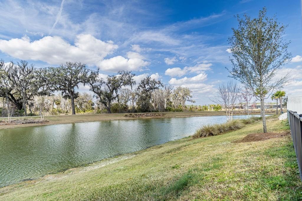 WELCOME HOME! Wildly popular Charlotte Bungalow Model--CHECK! Waterfront Property--CHECK! Private Fence Yard--CHECK! Majestic Live Oak Trees--CHECK! Walking/Biking Path--CHECK! Complete VIllages Lifestyle Property--CHECK! This Charlottte Bungalow Villa is one of the most desirable villas in the Village of DeLuna - perfectly positioned on a premium WATERFRONT homesite showcasing tranquil water, a preserve backdrop, and a breathtaking canopy of mature Live Oak trees cascading overhead.This exceptional 3-Bedroom, 2-Bath Charlotte BUNGALOW VILLA offers a rare blend of privacy, scenery, and convenience. The fully fenced private courtyard yard, private patio, and screened lanai create a peaceful outdoor setting ideal for relaxing, entertaining, and enjoying the natural landscape.A standout feature of this property is its location along a quiet multimodal path with no golf cart traffic, enhancing the sense of serenity while maintaining easy connectivity to The Villages lifestyle. Enjoy morning coffee overlooking the water and evening views across the preserve in a setting that feels private yet central.Inside, the home showcases a bright open floor plan with vaulted ceilings, crown and baseboard molding, and tile flooring throughout for a cohesive, low-maintenance interior. Sliding glass doors seamlessly connect indoor living spaces to the lanai and courtyard, maximizing natural light and views.The well-appointed kitchen is thoughtfully designed with: Hi Definition countertops Stainless steel appliances Gas range Pull-out shelving Pantry closet Breakfast barThe primary suite offers a comfortable retreat with lanai access, tray ceiling, custom walk-in closet, and an ensuite bath featuring dual vanities and a glassed Roman walk-in shower.Guest accommodations are versatile and well positioned. The front bedroom easily serves as an office, den, or sitting room, while the second guest bedroom is tucked behind a pocket door creating a private guest wing alongside a guest bath with tub-shower combination.Additional highlights include: Interior laundry with mud sink and extra-deep cabinetry Ceiling fans throughout Blinds on all windows Added garage storage Enclosed lanai extending the living space while capturing water and preserve viewsThis home is offered with high-quality, COMPLETELY TURNKEY furnishings, creating an effortless move-in experience ideal for full-time living, seasonal use, or investment. Furnishings are thoughtfully selected to complement the home's style and setting. Golf cart available separately.Location is outstanding - just .4 miles to the DeLuna Recreation Center and Postal Station, minutes to Fenney Recreation Center and trails, the Everglades Regional Recreation Center, and multiple championship golf courses including Lowlands, Loblolly, Longleaf, Red Fox, and Gray Fox. Conveniently positioned between Brownwood Paddock Square and the new Eastport Town Center for dining, shopping, and entertainment.Premium homesites offering water views, preserved natural landscape, mature Live Oaks, private fenced courtyard living, and multimodal path frontage are limited - especially in the highly popular Charlotte model.A rare opportunity to own a turnkey villa where the setting, privacy, and lifestyle truly stand apart.Schedule your showing and experience it in person.