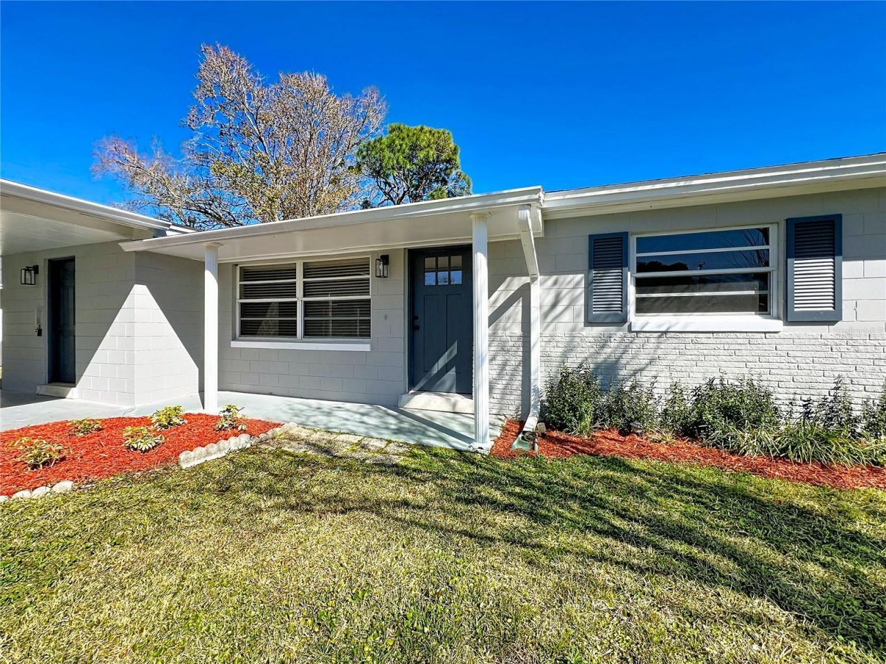 Fully renovated 4-bedroom, 2-bath home located in a quiet Titusville neighborhood on Florida's Space Coast. This move-in ready property features an open floorplan with modern white, black, and wood-tone finishes, brand-new cabinets, stainless steel appliances, and luxury vinyl flooring throughout. The spacious living area includes a cozy wood-burning fireplace, perfect for everyday living and entertaining. Enjoy added privacy with no rear neighbors and a screened-in porch ideal for relaxing outdoors. The backyard offers a storage shed and plenty of space to enjoy. A covered carport and extended driveway provide ample parking. Conveniently located just minutes from Kennedy Space Center, Port Canaveral, area beaches, parks, shopping, dining, and easy access to Orlando-perfect for first-time buyers seeking value and location.