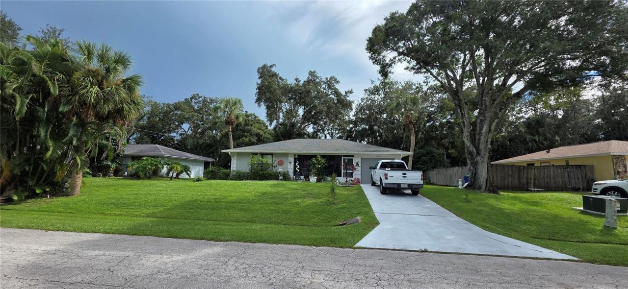 Beautifully well maintained, 2 bedrooms with 2 bathrooms updated with solid wood cabinetry, soft close doors and drawers, and solid surface counter tops. Updated kitchen with new solid wood cabinets and solid surface counter tops. This property is move in ready with a well thought out floorplan. 2021 Shingle roof, 2021 A/C system, 2018 water heater. seamless gutters, and a concrete driveway. Florida room off of the kitchen and dining room, and a screened in porch on the front entrance. single car garage, has a well in place, ready for irrigation to be installed. Hurricane shutters included.
